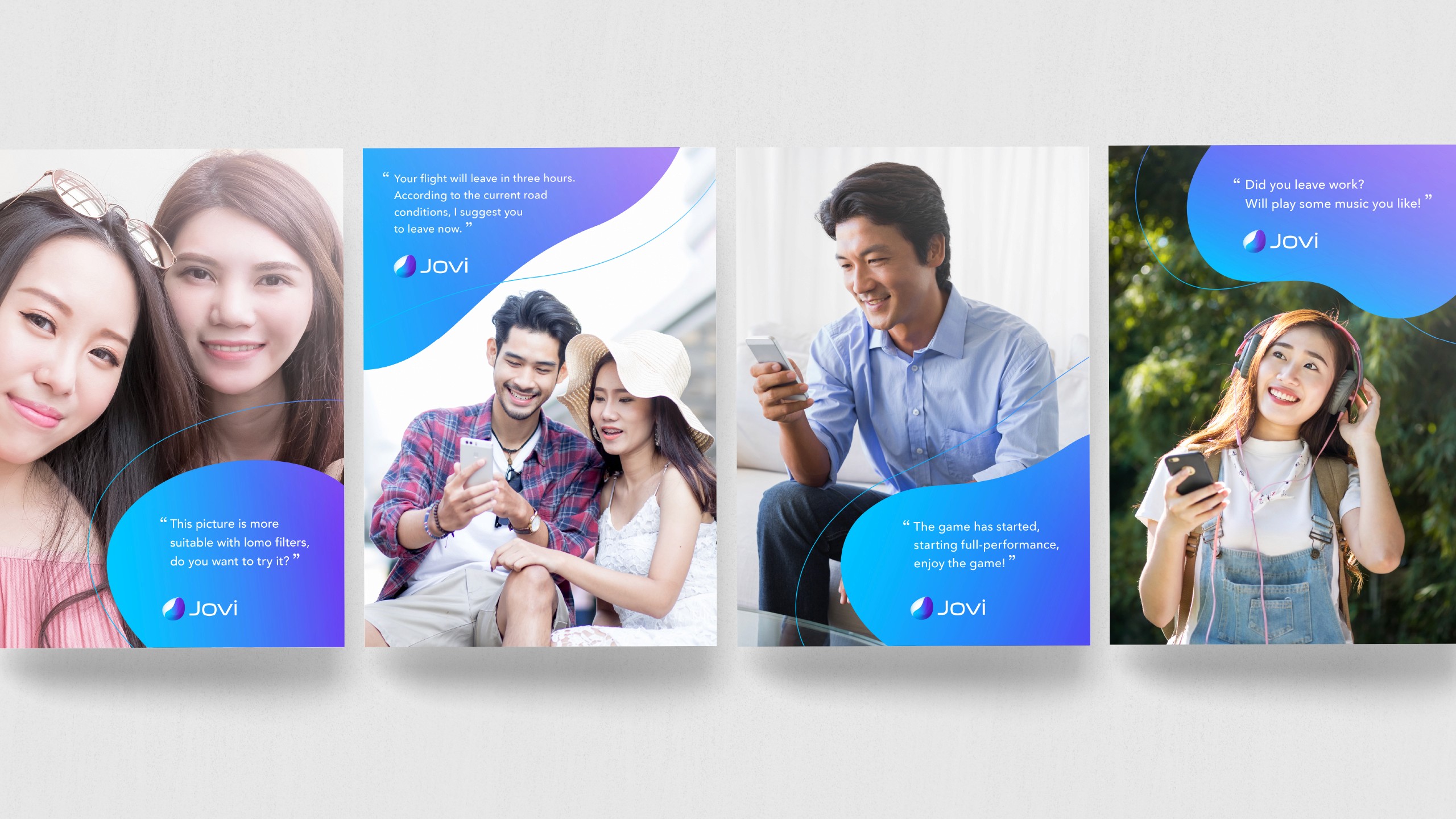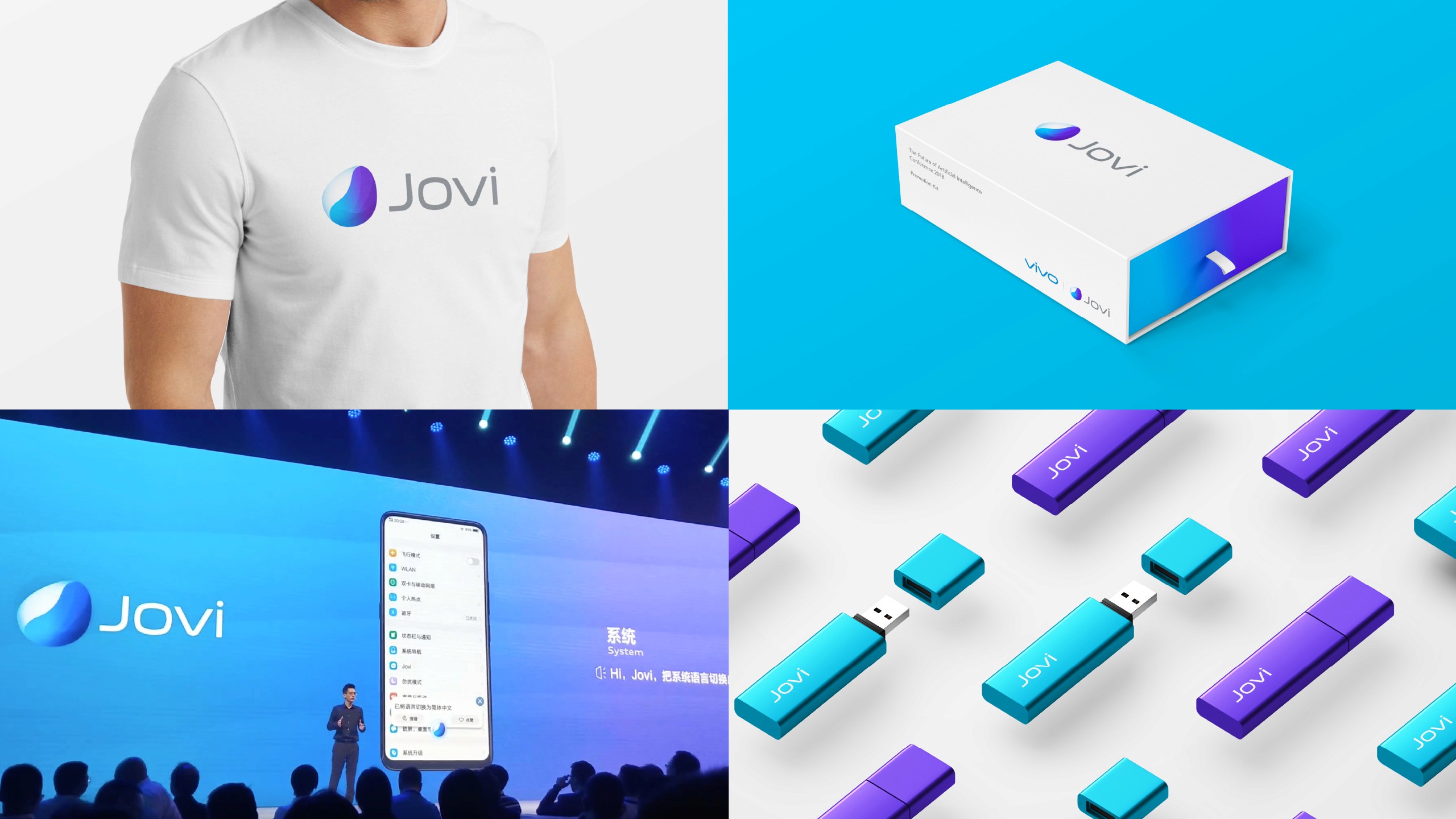 Vivo AI Service 'JOVI' Brand Design 중국 Vivo사 AI 서비스 JOVI 브랜드 디자인 Role · Identity Design · Application Design · Brand Guidelines Credits · Client: Vivo · Agency: Clay Corp